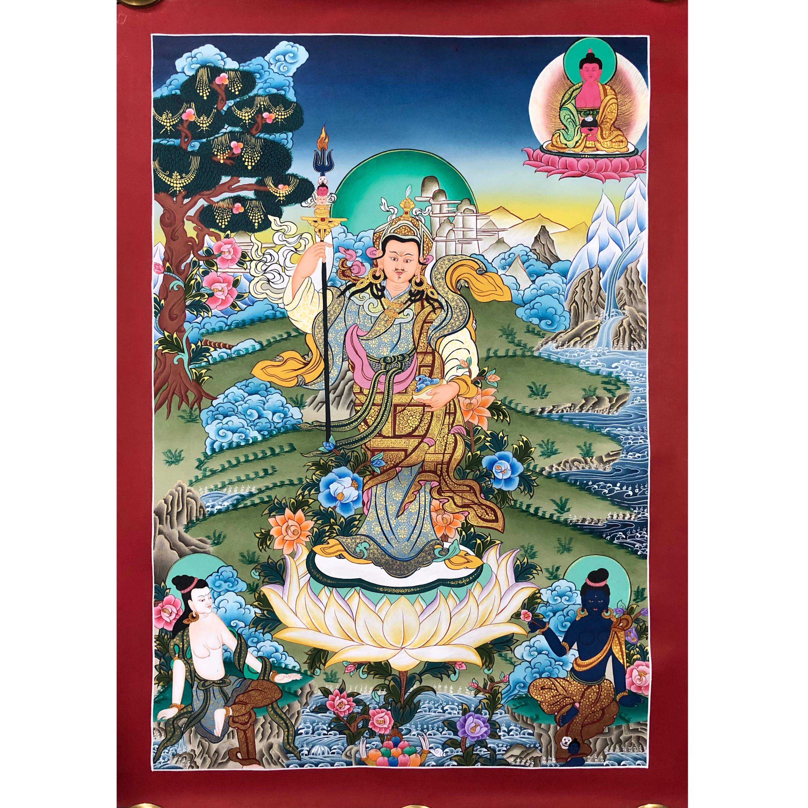 Master Quality Standing Guru Rinpoche Thangka, Padmasambhava Genuine Hand Painted Tibetan thangka